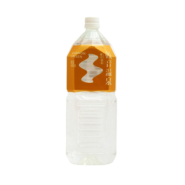 「飲む温泉 観音温泉」2リットルのペットボトルには2リットル強の観音温泉水が充填されています。