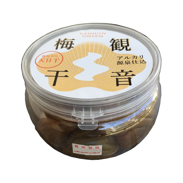 梅を観音温泉のアルカリ源泉に漬け込み、昔ながらの天日干しで旨みを出しています